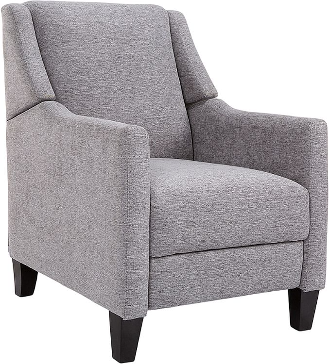 This recliner chair with high back, slim arms and exposed wood legs. This streamline design puts comfort center stage. At a touch of a button, you can recline with footrest extended and just relax. Available in push back or power.Read More