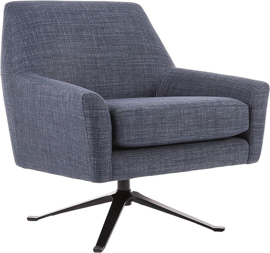 With a contoured back and gracefully sloped arms, this chair marries comfort with modernist glamour. A swiveling metal base supports the padded seat, providing visual contrast and versatility. Make a bold statement by incorporating this stunning chair into your home.Read More