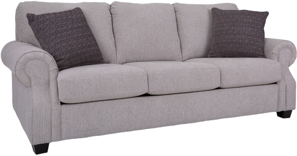 This traditional queen sofa sleeper has a rolled arm with optional nail studs and semi-attached back. Available as a sofa, loveseat, chair, and ottoman. Made by Canadian upholstery artisans. Make a bold statement by incorporating this into your home.Read More