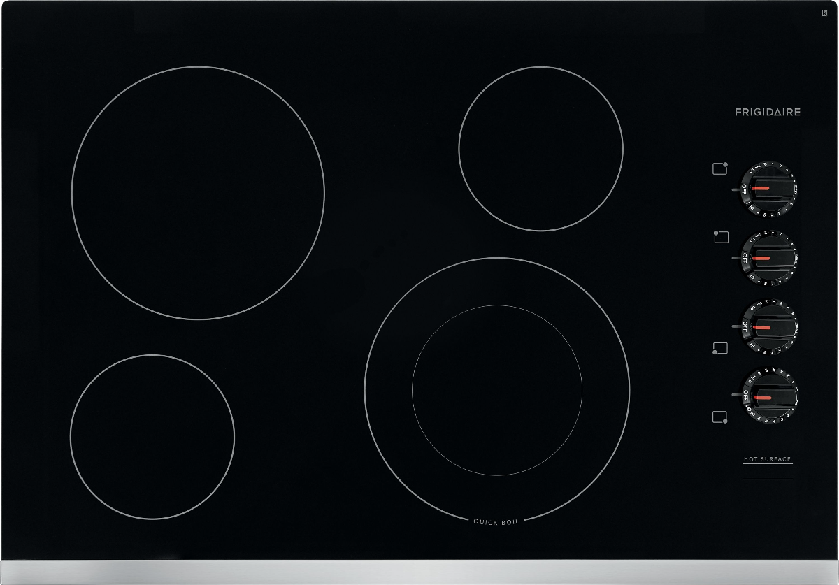 The Frigidaire 30 in. Electric Cooktophas two different element sizes, and alerts you when the cooktop is on and is too hot to touch. This frameless drop-in cooktop has easy-to-use controls that make it easy to select cooking temperatures and options.Read More