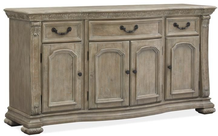 Rooted in Old World design with an updated and relaxed soft Fawn finish, it’s hard to surpass the appeal of the elegant Marisol dining collection. Featuring diagonal planking behind the 3 wood shelves with plate grooves.Read More