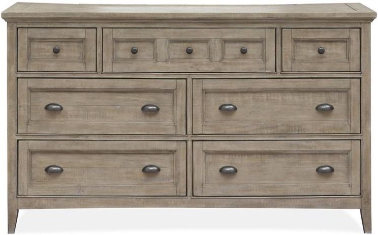 Paxton Place creates the perfect retreat. The Dovetail Gray finish accent by Weathered Bronze hardware displays the beaded, framed panel drawers over straight inspired legs handsomely. Whether in a second home, a casual city abode or in the suburbs, this collection offers plenty of drawers to stow your togs.Read More