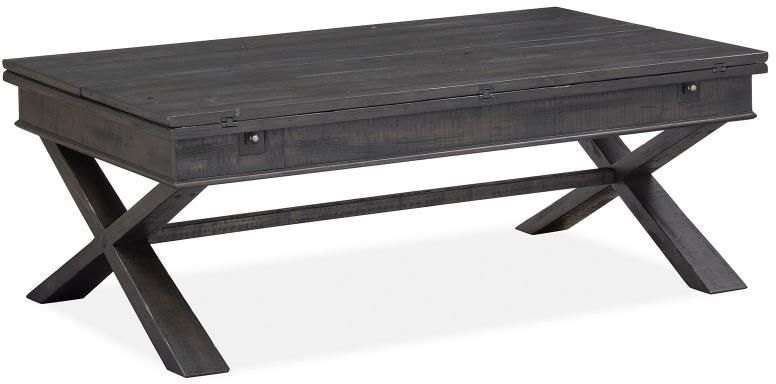 Create your own getaway at home with the handsome character of the Stepford table collection. Designed with thoughtful storage and display options, these stunning tables are finished in Smokehouse and highlighted with Pewter hardware for a look that will complement any sofa, sectional or seating area. Stepford’s simple silhouettes are elevated with stretcher bars and X-style legs that convey classic style. Versatile and multifunctional, this eye-catching table collection is perfect for creating a memorable space.