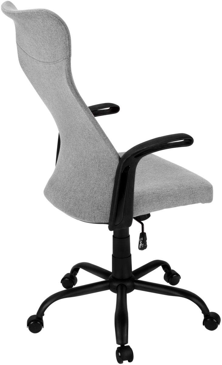 High-back executive office chair with fixed armrests in black and dark grey polyester fabric
