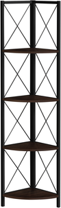 Perfect for photo frames, plants, other decorative items and even kitchen accessories, this transitional-style corner bookcase will upgrade your décor. Including four solid dark brown espresso display shelves, this corner display unit features a three-leg black metal frame and a X-Design to add modern flare wherever you choose to place it.Read More