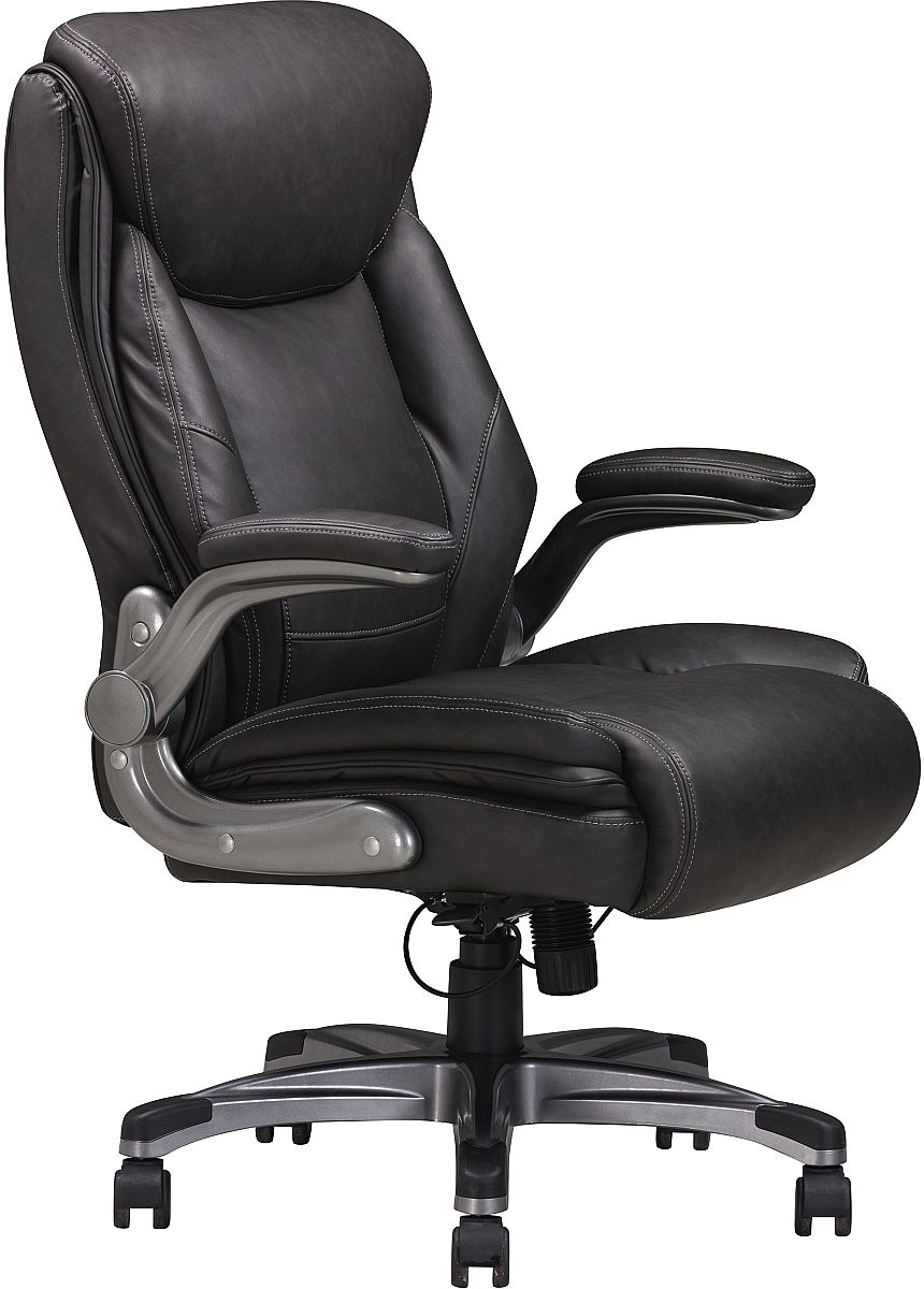Elevate your office space with the Sealy® Ryder Gray Bonded Leather Office Chair – where luxury meets practicality. This executive office chair is a blend of sophistication and functionality, perfect for any hard-working professional. Crafted with a sturdy plywood frame, it offers the durability you need for long work hours.Read More
