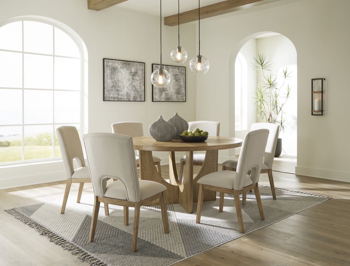 Taking an organic approach to a curated dining room aesthetic, this warmly neutral dining chair has a natural appeal. Its clean-lined design is highlighted with an effortlessly beautiful linen-like upholstery and a chic cutout.