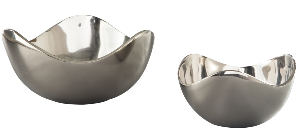 Infuse a curvy and sleek vibe into your home with this 2-piece bowl set. The silhouettes have such an enticing rhythm. Chrome-tone finished metal is fashion-forward, elevating the contemporary ambience. Fill them with quick bites for stylish entertaining and dinner parties.