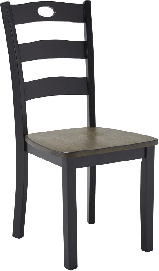 This Froshburg dining room side chair features a two-tone finish and a cottage-chic, ladderback design.