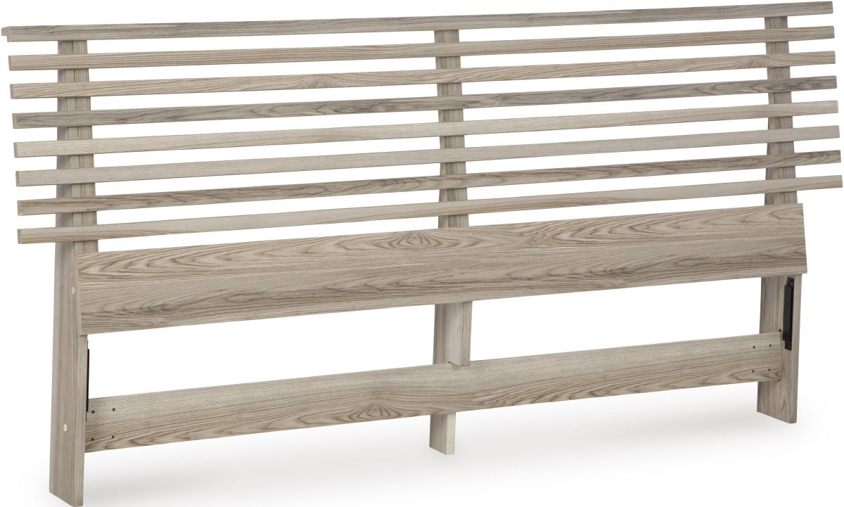 Modern meets neutral and sophisticated in this queen headboard. Its clean lines and open slat design wake up your bedroom with eye-catching appeal. The natural finish and subtle replicated wood grain speak casual simplicity, creating a smart and stylish bedroom retreat. A refreshing take on style, indeed.Read More