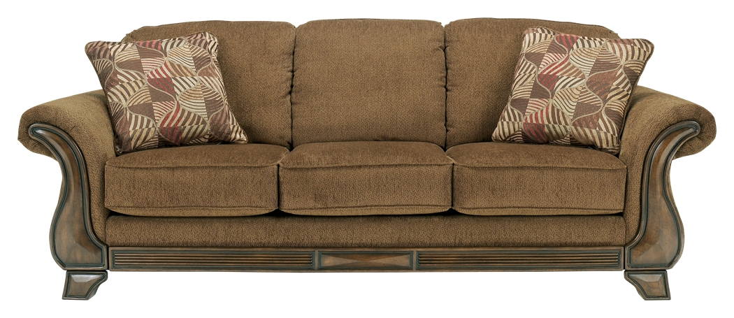Feel cozy every time you sit back and relax with the Montgomery collection from Signature Design by Ashley®. With the soft polyester upholstery, rolled arms, and supportive cushioning, every pastime feels like luxury. The faux-wood accents bring a dash of sophistication to this collection and your home’s traditional style.