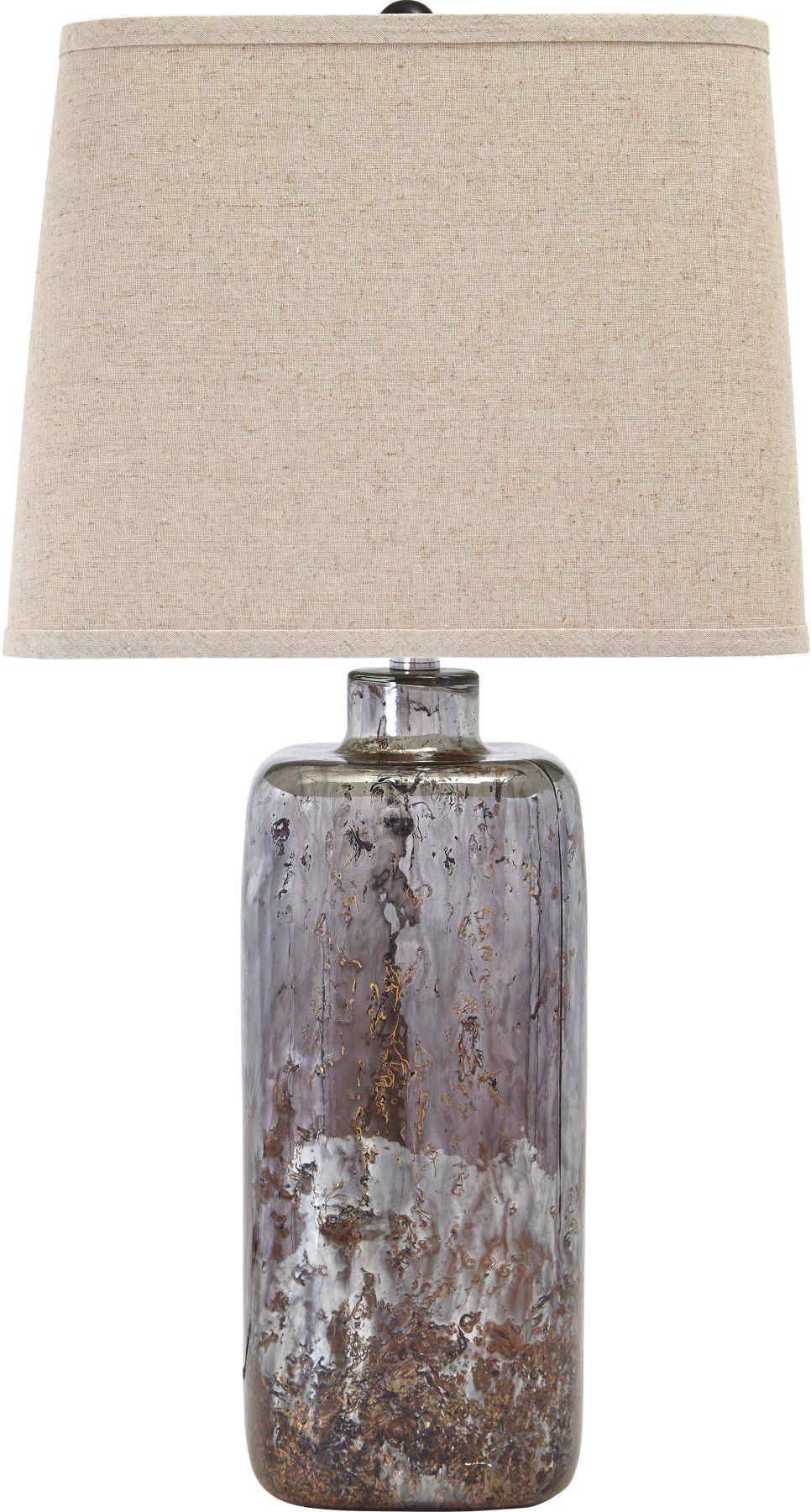 Live for the luster of the Shanilly table lamp’s glass base, in a swirl of browns and mercury. A squared hardback shade provides style and soft illumination.